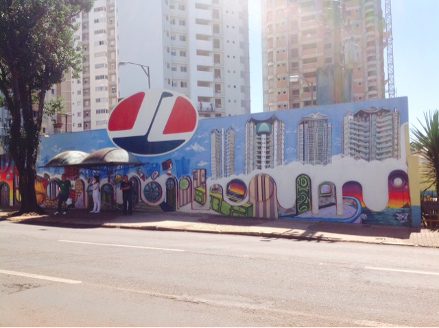 Совершенно забыла поделится фотографиями остановки для местного транспорта. Сфотографировала, когда мы были еще в Бразилии. Обычная остановка украшена так по сказочному красочно. Мне кажется у людей прям настроение поднимается , пока они ждут автобус. Такое ощущение, что за нарисованной дверью действительно спрятана маленькая каморка Папы Карло, а в маленькие окошки за нами наблюдают волшебные лесные жители))) Побольше бы таких произведений искусства!